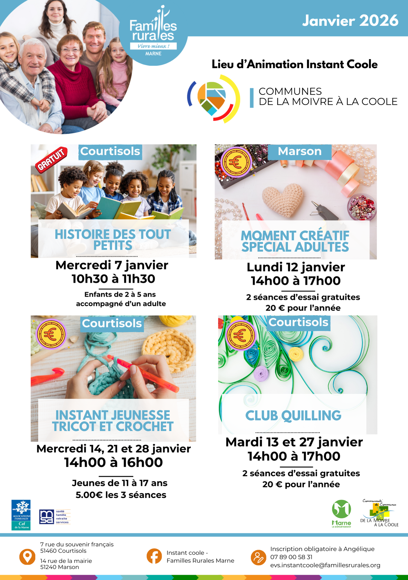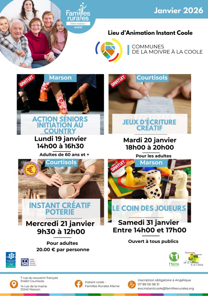 Familles Rurales Marne – Lieu d’Animation Instant Coole – Ateliers Janvier 2026