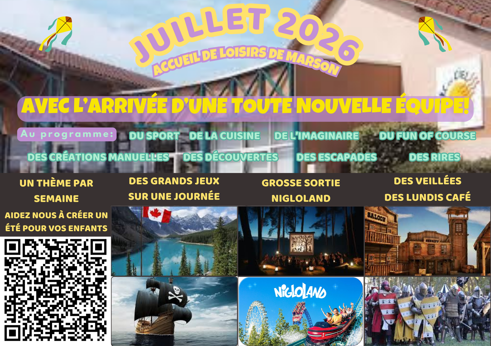 Une nouvelle équipe d’animation accueillera vos enfants au centre de loisirs de Marson du 6 au 31 juillet 2026.