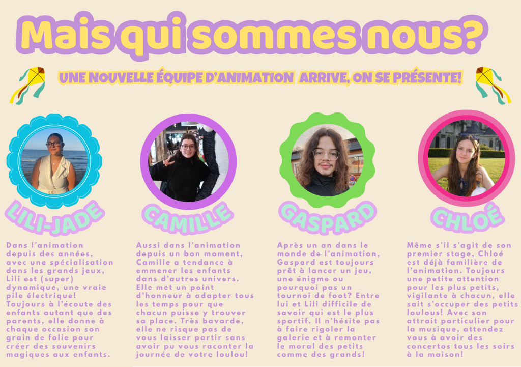 Elle sera composée de trois animatrices, dont une directrice, et d’un animateur, tous mobilisés pour proposer des activités variées et de qualité.